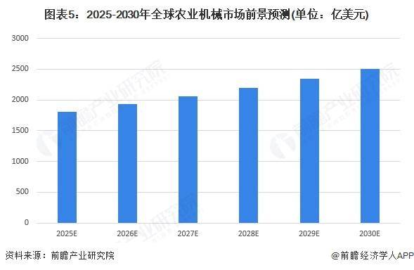 从中持久来看,跟着全球生齿增加和粮食需求的不竭添加,农业机械做为支持农业出产的焦点配备,市场需求无望持续提拔。手艺立异将成为行业成长的环节驱动力,从动化手艺的普遍使用,将使农业机械愈加精准、高效,不只能提高农做物产量和质量,还能降低人力成本和资本耗损,同时,亚太地域做为全球最大的农业机械市场,跟着农业现代化历程的加快,市场潜力将进一步。初步估量,2030年全球农业机械行业市场规模跨越2500亿美元,年均复合增加率约为6。7%。