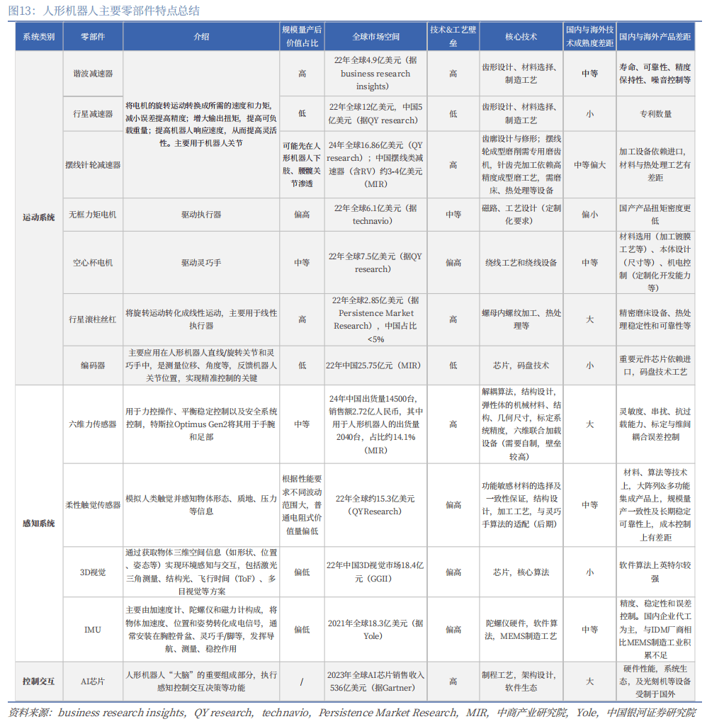 焦点零部件占具身智能零件成本比例较高,涉及手艺道理、材料、工艺等多范畴,是机械人实现、活动、推理决策的硬件根本。次要包罗活动系统(电机,减速器,丝杠等,其配合集成关节模组)、系统(传感器等)、节制交互(芯片、电池、充电系统等)。目前本体厂商硬件方案增量变化集中正在工致手、电子皮肤、一体化关节、轻量化、固态电池、GaN方案等。