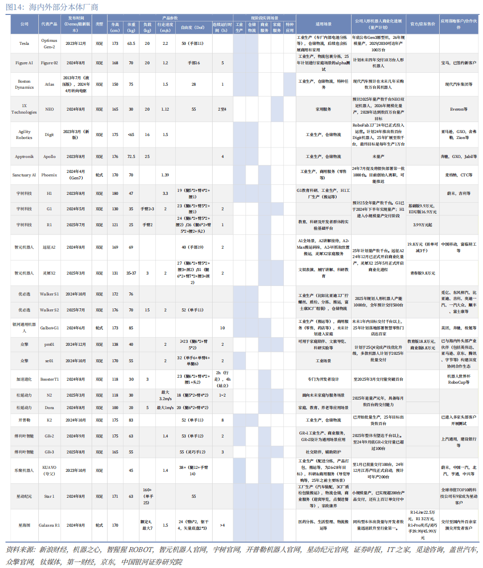 5)其他科技/互联网大厂:目前人形机械人成为科技/互联网大厂共识的标的目的之一,基于较强的手艺、资金、人才实力,腾讯晚期曾试水推出类人形机械人“小五”,字节等正在也正在加速结构,是实力强劲的潜正在合作者。本体之外,科技/互联网大厂目前更多的是采纳投资+自研大模子的体例参取人形机械人财产,如阿里&蚂蚁投资宇树、星海图、逐迹动力等;腾讯投资宇树和智元;美团投资宇树、银河通用、星海图等,结构医疗配送、无人零售、低空等范畴;京东投资千寻智能、众擎机械人、逐迹动力等,共同本身JoyAI大模子和JoyScale AI算力平台,办事公司物流、仓储等供应链场景。