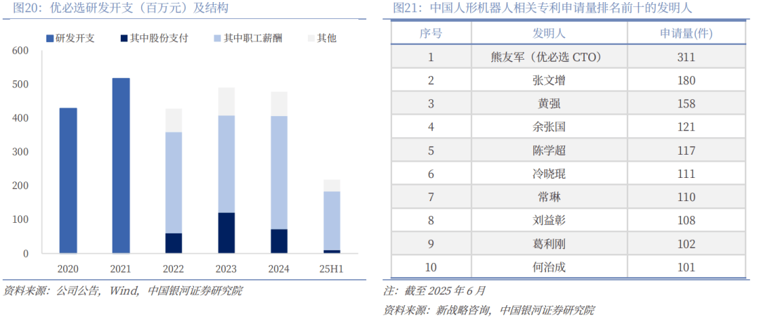 截至2025年6月30日,公司获授权专利数量已达2,790项,较24岁尾新增4。1%。同时牵头了多项人形机械人和具身智能范畴国度尺度的编制和制定。据新计谋征询统计国度学问产权局相关消息,公司CTO熊友军位列中国人形机械人相关专利申请量排名前十发现人的榜首。此外,公司研发开支占营收比例常年位于35-60%高程度区间,通过较优研发人员薪酬和股权激励加强优良人才粘性。